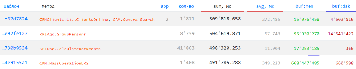 С помощью сортировки по столбцам вы можете определить как наиболее часто повторяющиеся, так и лидирующие по используемым ресурсам шаблоны.