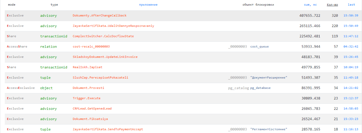 Отслеживание в режиме онлайн позволяет получить мгновенный снимок состояния активных процессов и блокировок на сервере PostgreSQL сразу при появлении информации в лог-файле. Наличие оперативной информации о зависимостях блокировок между собой позволяет постфактум понимать и устранять исходные причины возникновения проблем, исследуя их в разрезе как приложений, так и вызывающих конфликты объектов.