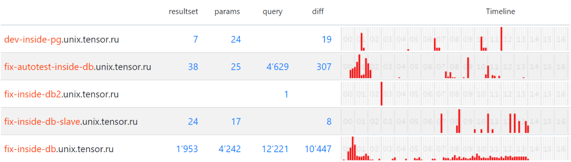 Немалые проблемы серверу могут доставить и запросы, передающие большие объемы трафика по сети как в одну (огромное автоматически сгенерированное тело запроса или набор параметров), так и в другую (результирующая выборка большого размера) сторону. Распределение в течение суток и анализ разницы между временем выполнения конкретного плана и окончанием передачи его результата клиентскому приложению позволяют понять, пересекаются ли такие запросы между собой настолько сильно, чтобы создать проблемы для сервера СУБД.